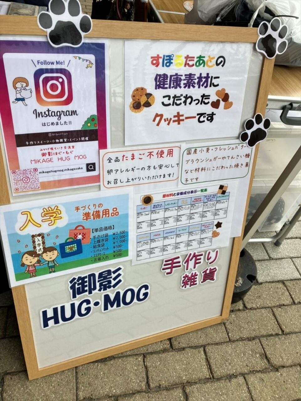 まず会場に入って目に入ったのは可愛らしく美味しそうな焼き菓子と、手作り雑貨が並ぶ「御影はぐ・もぐ」さんの看板。