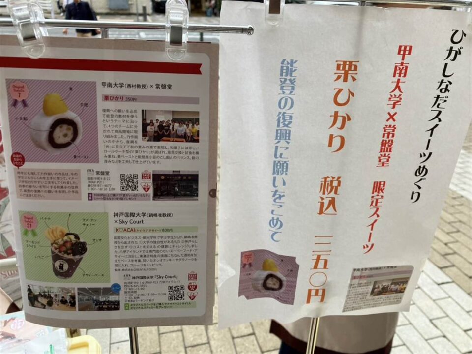 今回は大学生コラボ企画として甲南大学の学生と意見交換や試作を繰り返して生み出したコラボスイーツを販売していました。
