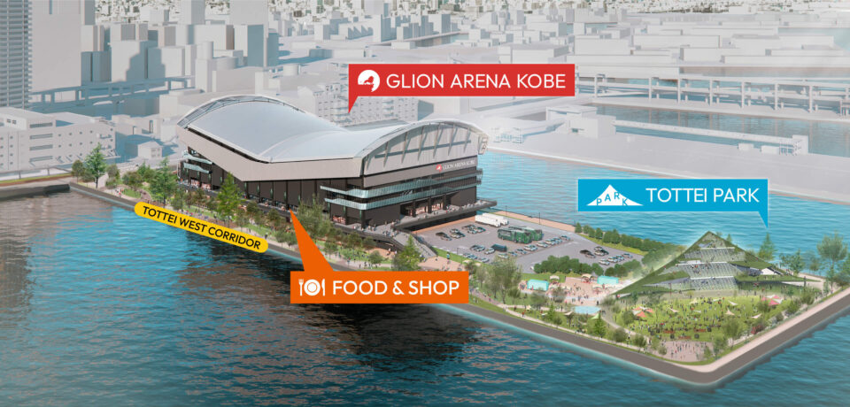 最大1万人を収容できる次世代アリーナ「GLION ARENA KOBE」を中心に、