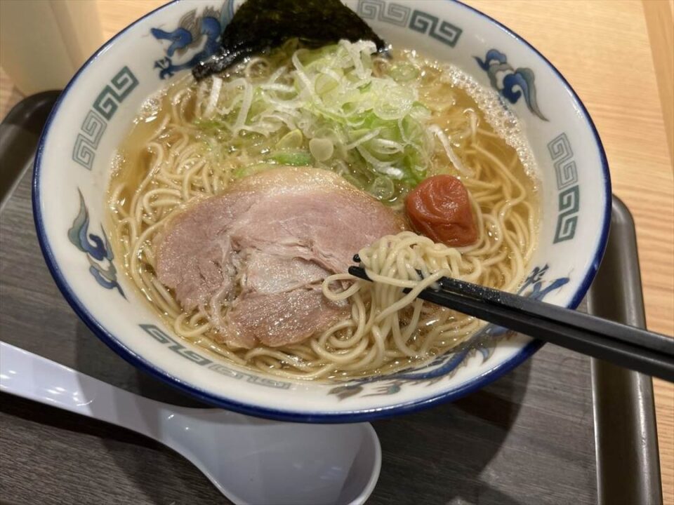 朝からラーメンを食べられるのかなと思ったのですが、細い麺がのどごしよく、スープによく絡んで無理なく食べられます。