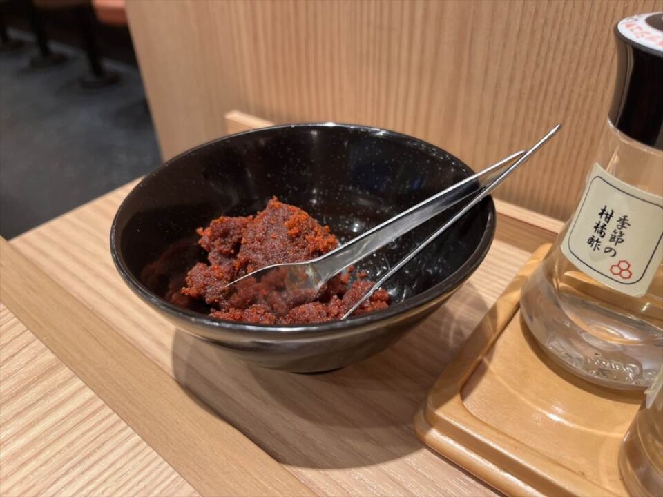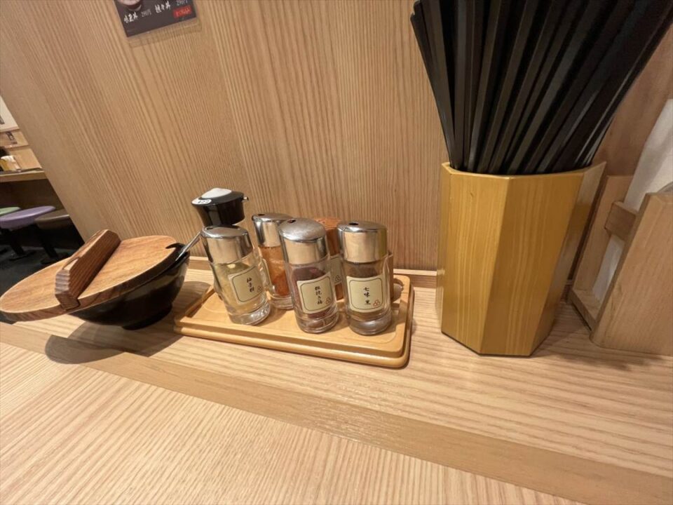 机には味変用の調味料が色々あります。基本はつけ麺のもののようですが、一味や辛味はラーメン用でした。