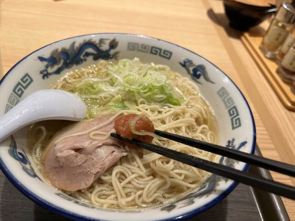 そして梅干し、これがとても良いアクセントになっています。酸味でさらに後味がすっきり、頭はしゃっきり。そんなラーメンでした。
