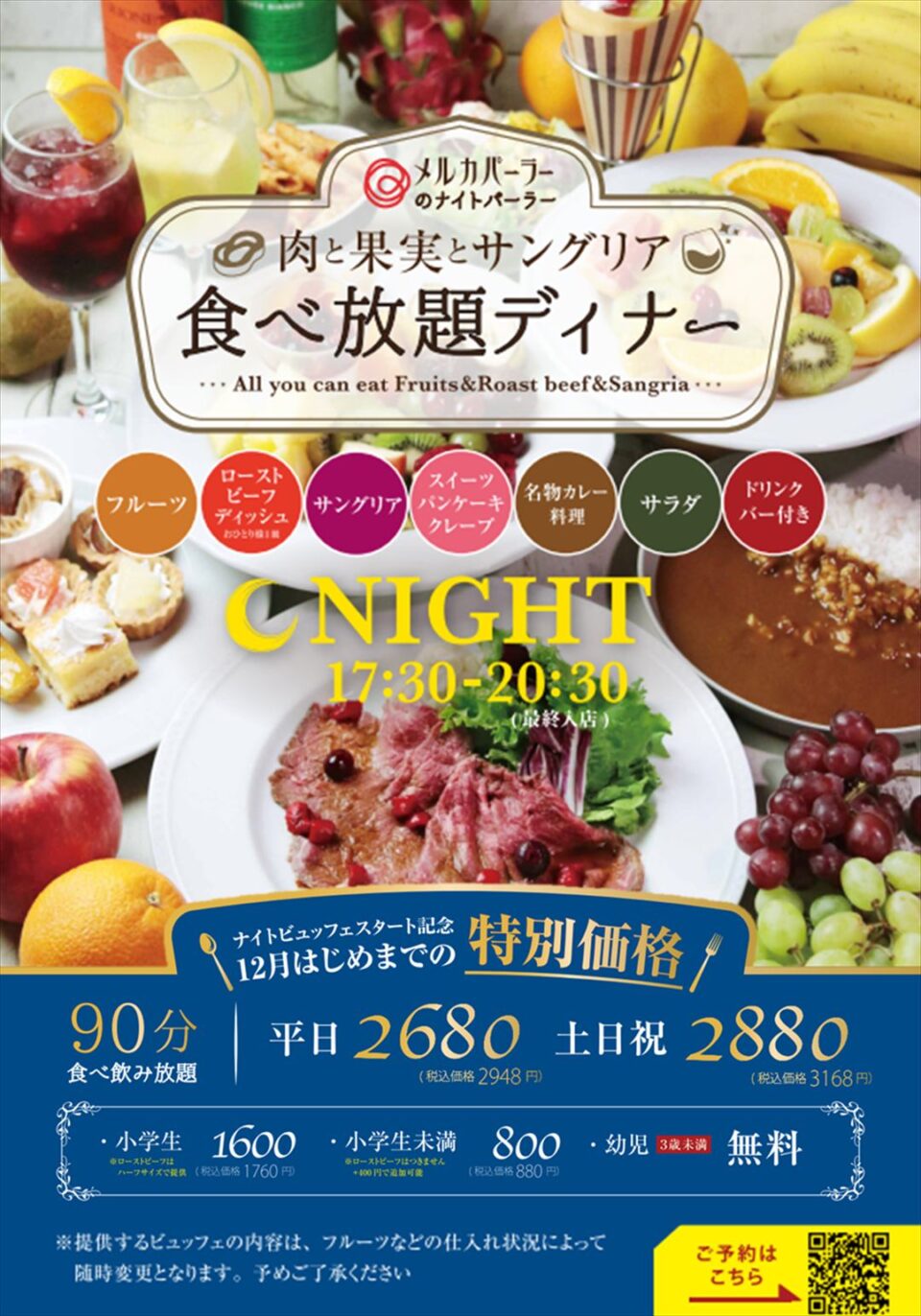 ・肉と果実とサングリア 90分食べ放題ディナー 平日2,680円 土日祝2,880円(各税抜)