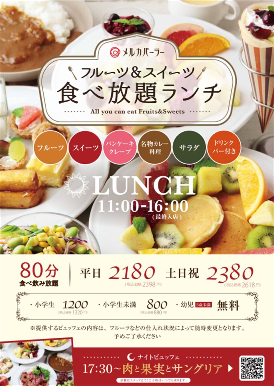 ・フルーツ&スイーツ 80分食べ放題ランチ 平日2,180円 土日祝2,380円(各税抜)