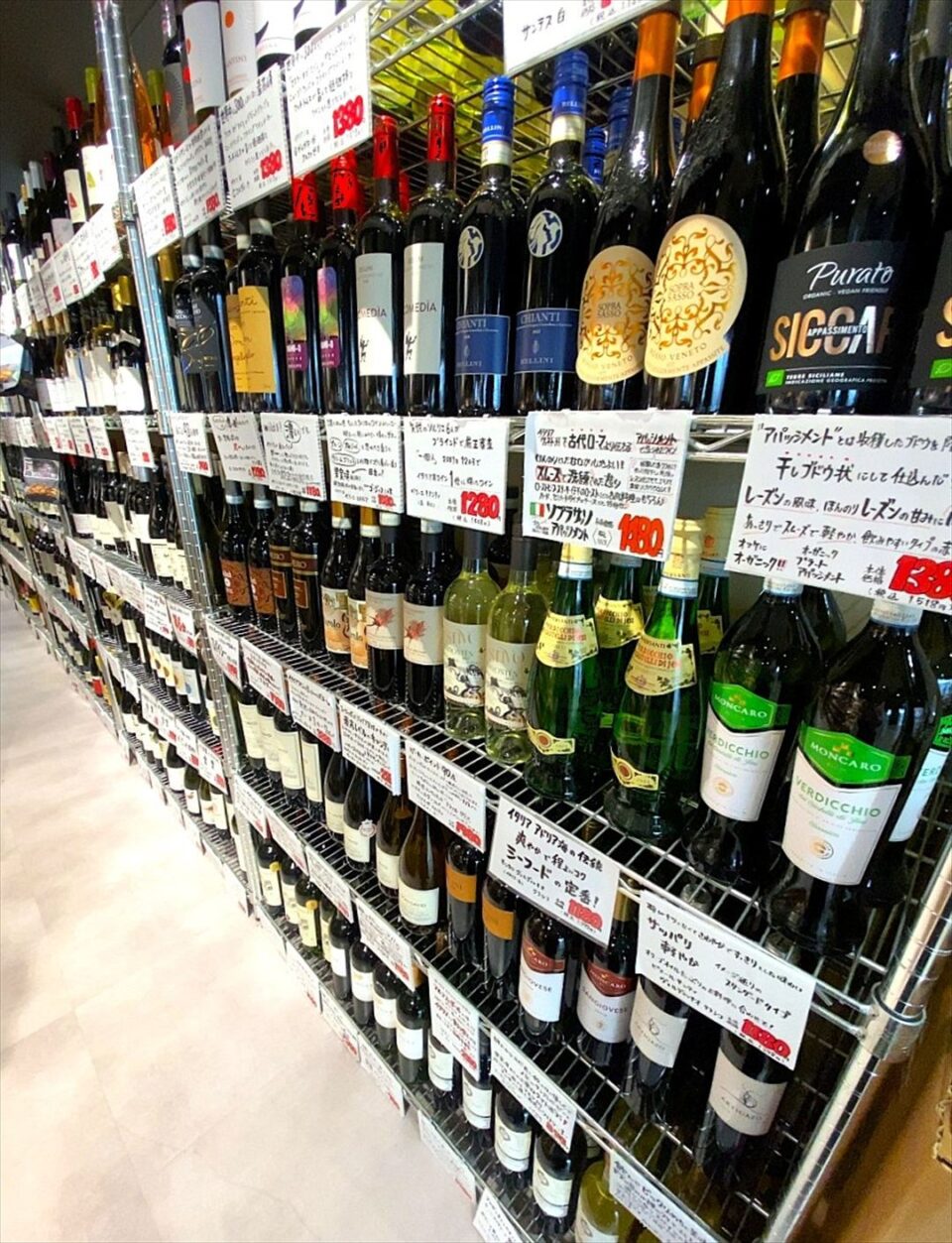 お酒はワインが一番種類が豊富で赤白様々な銘柄が並んでいます。