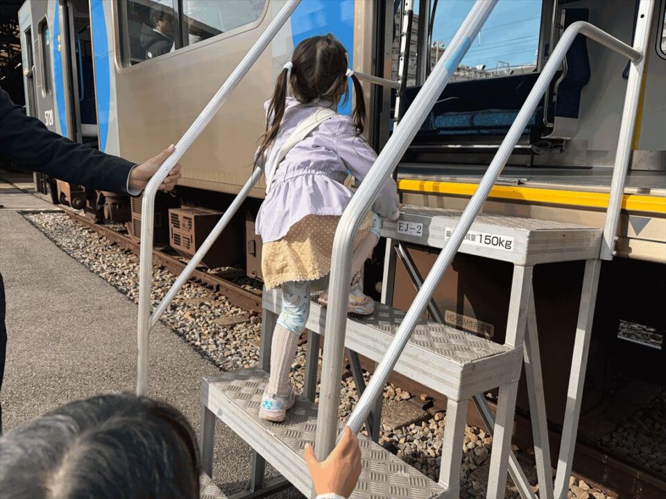 地上にいた運転手さんが手をとって1人1人降ろしてくださるので、もし人見知りしたり「ママがいい!」などと叫ばれたらと思うとゾッとしました。
