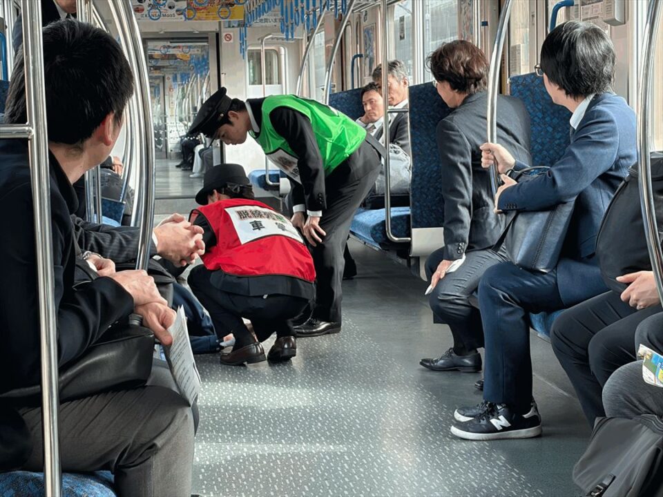 続いて乗客の中に社員がいたら手伝いに来るようにアナウンスがあり社員の方々は一番前の車両へ。