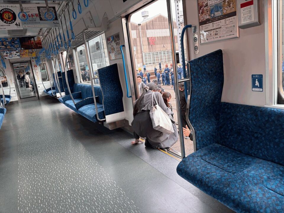 乗降ドアが開いている車両を移動するのは、最後尾からなのも相まって道中少し不安でした。