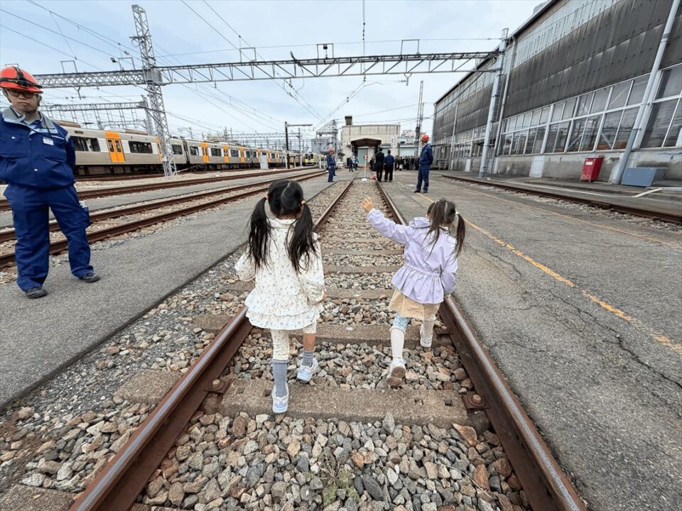 さてその前日の11月4日、阪神電鉄尼崎車両基地では鉄道非常事態対応総合訓練が行われ、エンカチライターとして私も4歳6歳の娘を連れて参加させていただきました!