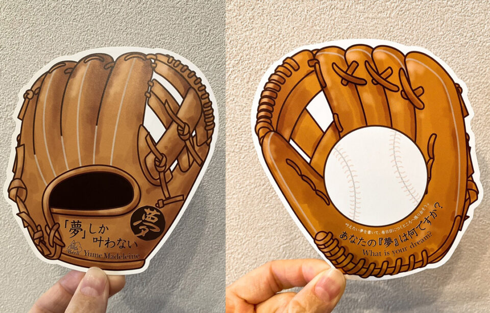 また、このマドレーヌと同じ形のグローブの形の「夢カード」が箱入り商品には付いており、夢を書いてお菓子に添えたり飾ったりすることもできます。