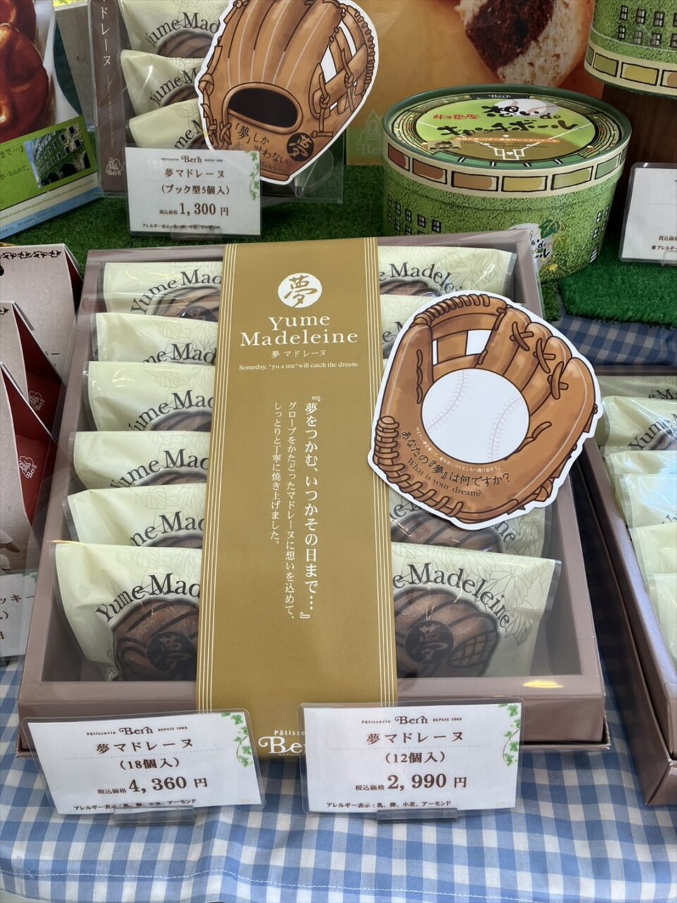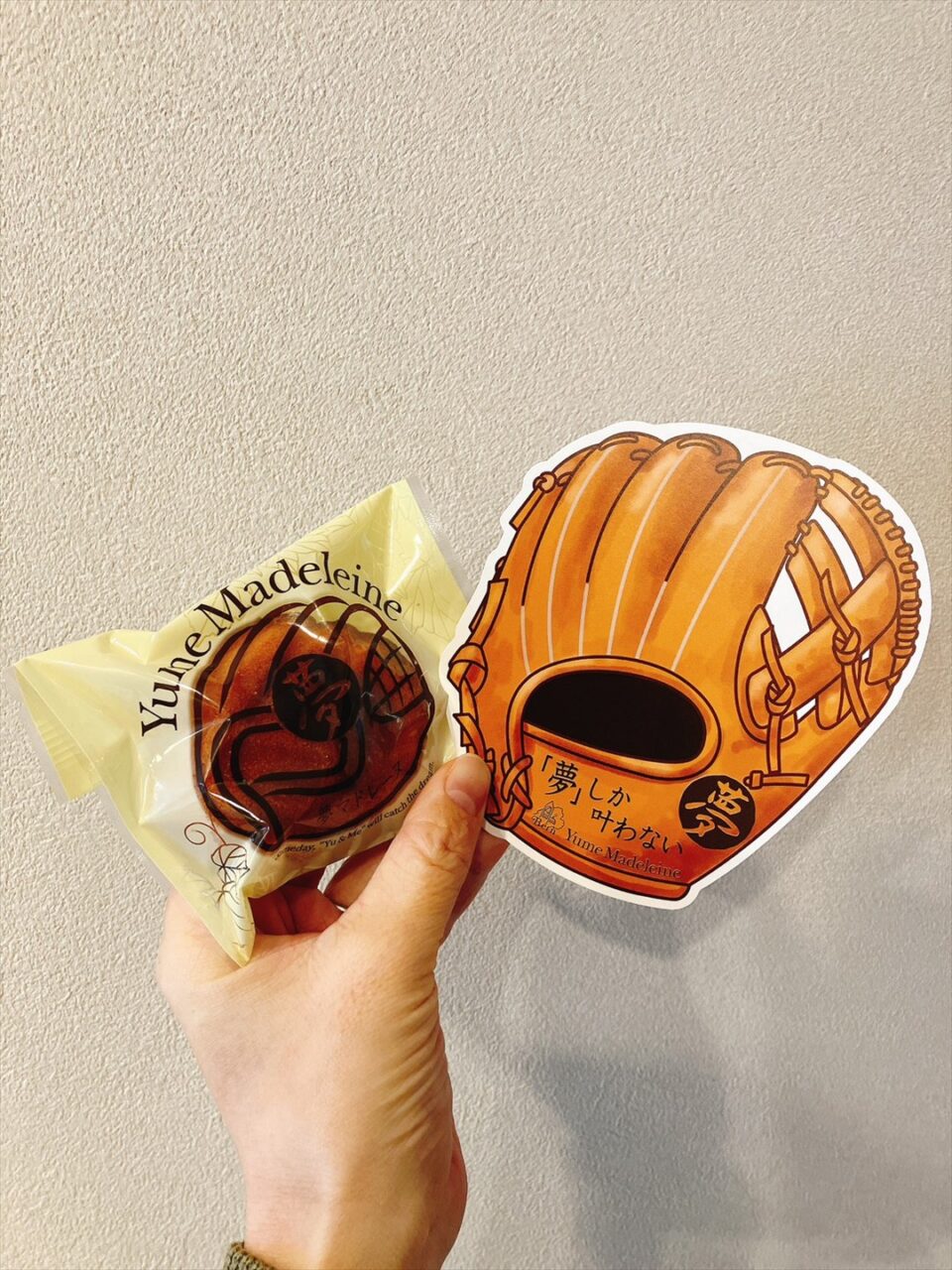 グローブをかたどったマドレーヌ型で焼き上げたマドレーヌで、「夢をつかむ、いつかその日まで…」という想いが込められています。