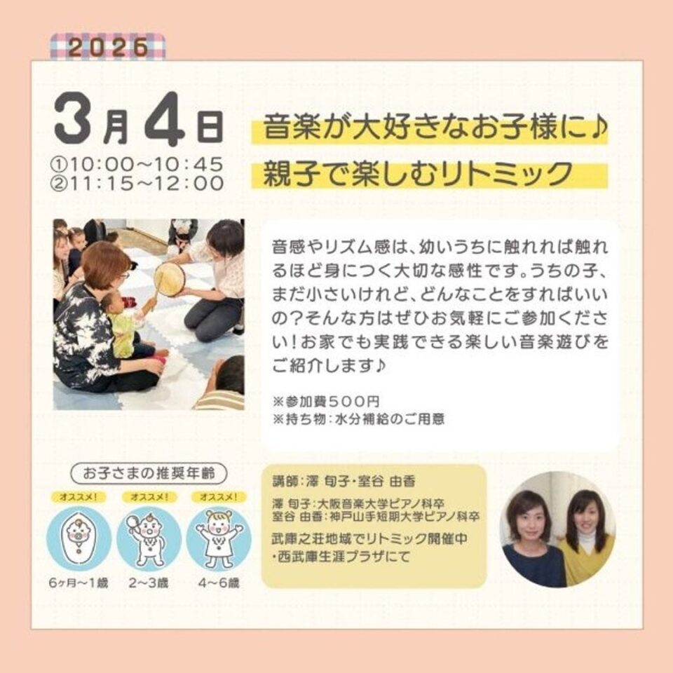 「音感やリズム感は、幼いうちに触れれば触れるほど身につく大切な感性です。うちの子、まだ小さいけれど、どんなことをすればいいの?そんな方はぜひお気軽にご参加ください!お家でも実践できる楽しい音楽遊びをご紹介します♪」といった紹介文でした。