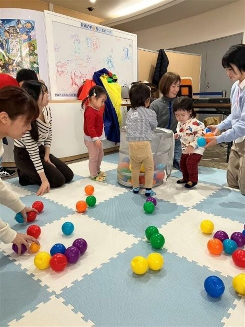 朝一番の回に参加しましたが、既に何組かの親子がマットの上でゆったりと過ごしていました。