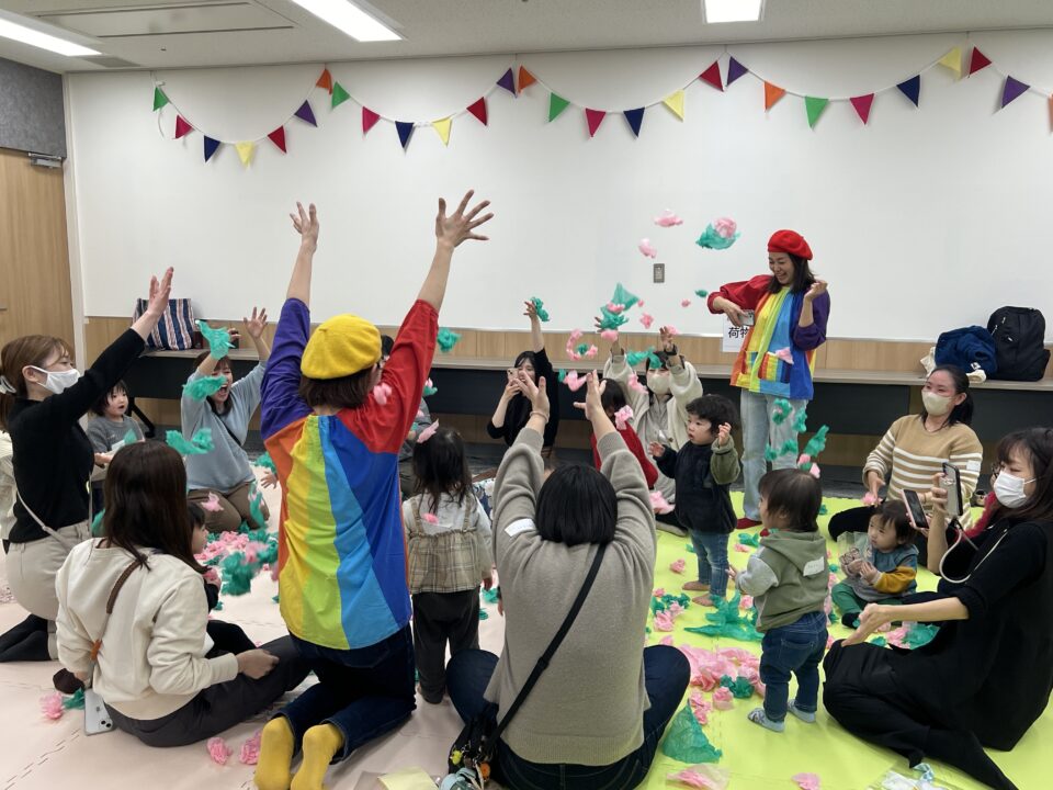 「うれしいひなまつり」の歌に合わせてみんなでリズム遊びをしたり、