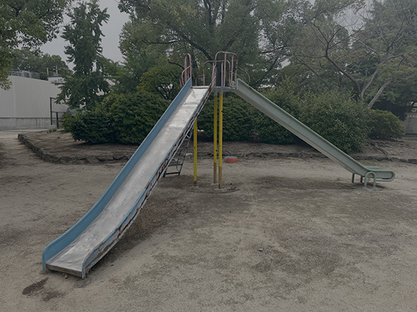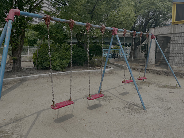 芦原大橋から少し南に立地する公園です。公園の入り口付近に大きなソテツが植えられているので、それがこの公園の目印です。この公園には、公園中央、公園を取り囲むような形で各種の木々が植樹されており、緑豊かな公園です。日中でも木陰で涼がとれる印象です。取材時には、そこで休憩しておられるご高齢の方がおられました。また、鳩が集まっていたり、綺麗な蝶や虫もたくさん見ることができました。公園内はすべり台をはじめとする各種遊具も充実していますし、走り回って遊べるような広いスペースもあります。子どもさんが楽しんで遊べるのではと思います。トイレはきちんと整備されていましたが、その中は昼間でも少し薄暗い印象があります。公園は五号橋線に面していますが、取材時の印象では車通りは少なかったです。